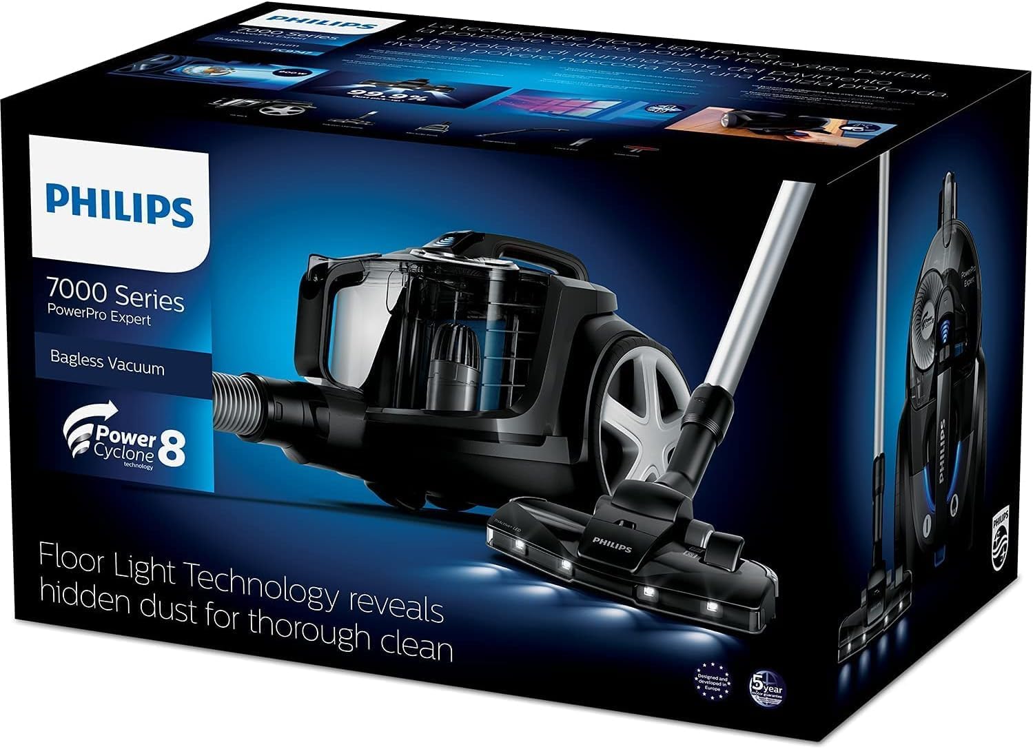 PHILIPS PowerPro Expert سری 7000 (جاروبرقی بدون کیسه، نازل LED TriActive+، فیلتر آلرژی، 900 وات) مشکی براق - FC9747/09