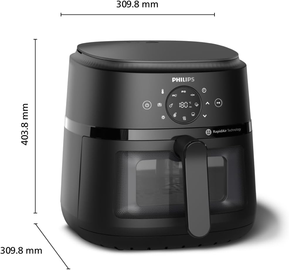 Philips Airfryer 2000 Serie – 13 Zubereitungsmöglichkeiten, 6,2l Fassungsvermögen, kompaktes Design mit Kochfenster, RapidAir-Technologie, 90% weniger Fett, leicht zu reinigen (NA230/00) | قیمت یورویی 99.99€
