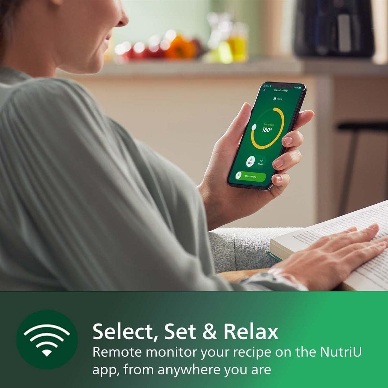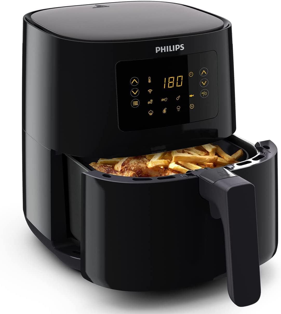 Philips Airfryer سری 5000، اندازه بزرگ، 4.1 لیتر (0.8 کیلوگرم)، عملکردهای آشپزی 13 در 1، اتصال Wifi، 90٪ چربی کمتر با فناوری هوای سریع، برنامه HomeID، سازگار با الکسا (HD9255/90)