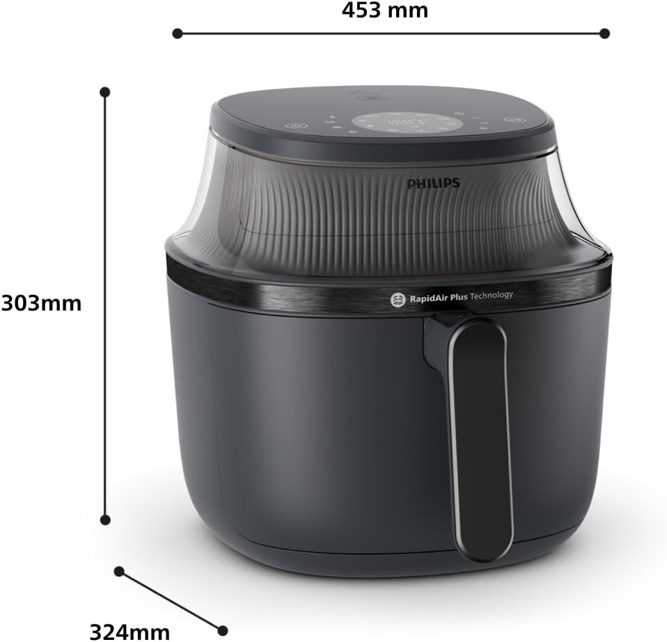 Philips Airfryer 3000 Series 7.2L, Kochfenster, 16-in-1 Kochfunktionen, RapidAir Plus Technologie, Fat Removal, HomeID Rezepte-App, mühelose Reinigung (NA340/00) | قیمت یورویی 169.99€