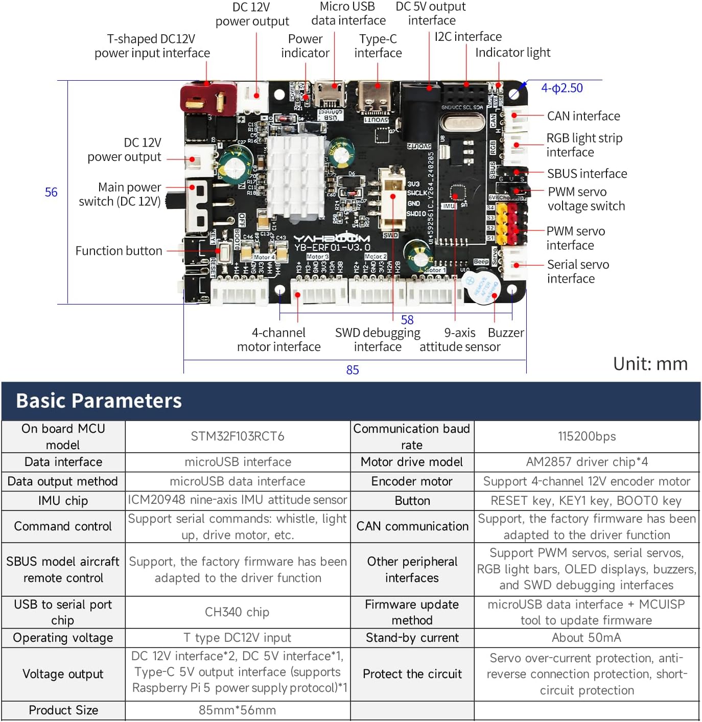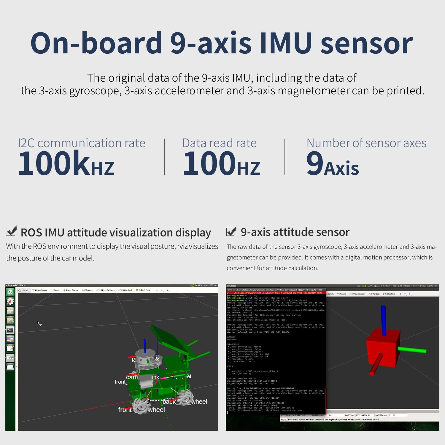 【Compatible with various development boards】Newly compatible with Raspberry Pi5/4b/Jetson series development boards, Horizon, and engineering controller development boards. It also has multiple power interface outputs, allowing you to DIY a stable power supply system through the expansion board. The 3.0 expansion board supports the pi5 power supply protocol and can power the Raspberry Pi 5 motherboard without current limitation. 【Rich external device interfaces】The expansion board is compatible with 4-way coding motors, can be adapted to a variety of models, and is compatible with PWM steering gear and three serial bus communication methods such as Mecanum wheel and four-wheel wheel differential, wheel base, etc. 【Onboard 9axis IMU attitude sensor】Operate the IMU register initialization and print the original data of the nine-axis IMU including the data of the three-axis gyroscope, three-axis accelerometer, and three-axis magnetometer. Use ROS environment to display the visual posture, and rviz to visually display the car model posture. Compatible with ROS1 and ROS2, and can be developed together with the ROS robot kit. 【Full document source】In addition to the basic knowledge of the STM32CUBEIDE program, it also includes drive code motors, PWM servo controllers, serial bus routers, reading and solving MPU92509 axis attitude sensor data, multi-communication interface control, etc.; the open hardware schematic diagram is Yes, it is easy to use according to the driver examples. 【Data link】The data link for expansion board versions 1.0 and 3.0 is the same: http://www.yahboom.net/study/ROS-Driver-Board | قیمت یورویی : 84€