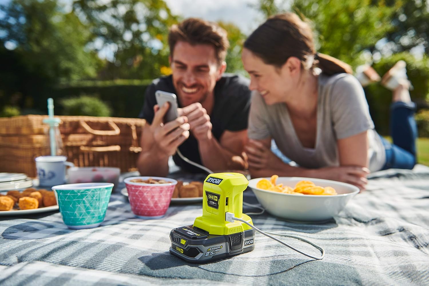 RYOBI 18 V ONE+ باتری-آداپتور USB R18USB-0 (درگاه شارژ 1.0 A/2.1 A، بدون باتری و شارژر)
