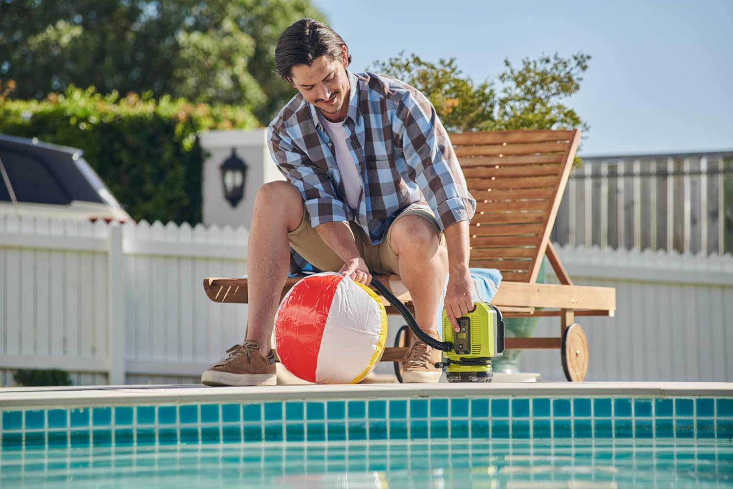 LEISTUNGSSTARKER KOMPRESSOR: Erreicht einen maximalen Druck von 11 bar – ideal für Autoreifen, Fahrradreifen und Bälle PRAKTISCHE AUFBEWAHRUNG: Integrierte Ventilaufbewahrung sorgt für Ordnung und schnellen Zugriff auf Zubehör INTELLIGENTE DRUCKSTEUERUNG: Eingebauter Abschaltautomatik-Modus verhindert Überfüllung und sorgt für präzise Ergebnisse EINFACHE BEDIENUNG: Digitale Anzeige ermöglicht genaue Druckeinstellung und eine intuitive Handhabung KOMPATIBEL MIT ONE+ SYSTEM: Kompatibel mit über 200 RYOBI 18 V ONE+ Geräten für maximale Vielseitigkeit | قیمت یورویی : 110.99€
