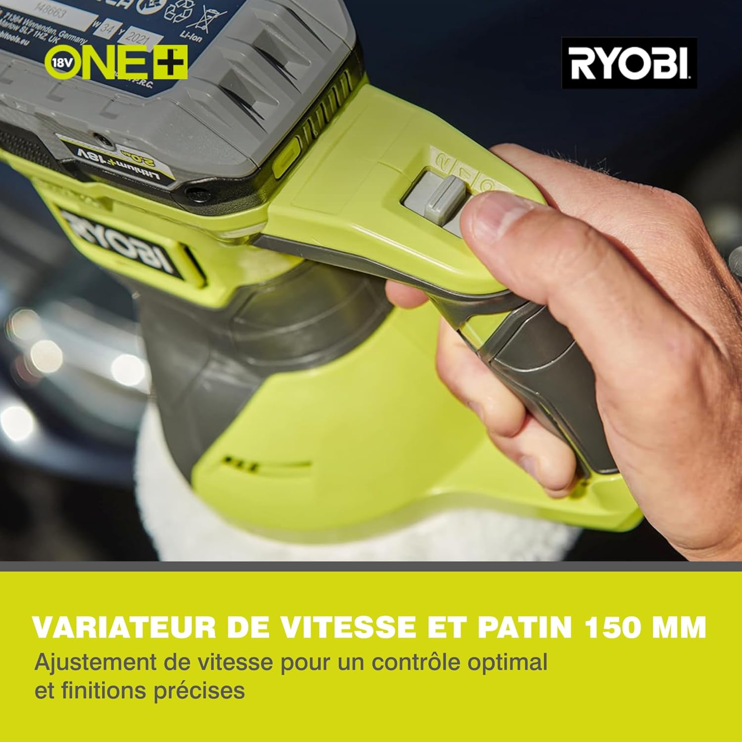 RYOBI 18 V ONE+ Akku-Exzenter-Polierer PRO R18P-0 (Polierteller 125 mm, Schwingkreisdurchmesser 8 mm, Schwingzahl 3000-7500 min⁻¹, ohne Akku und Ladegerät) لینک آمازون : https://www.amazon.de/dp/B0BL13W7LY?th=1&psc=1 ایده آل برای استفاده از پولیش و موم برای مراقبت از رنگ ماشین همچنین برای استفاده در قایق، مبلمان چوبی و میز کار ایده آل است حرکت تصادفی مداری پایانی بدون چرخش را تضمین می کند موتور قدرتمند تا 4600 دور در دقیقه، با سوئیچ برای انتخاب دو سرعت (3000/4600 دور در دقیقه) کار را دقیقاً با یک پد 150 میلی متری انجام دهید"