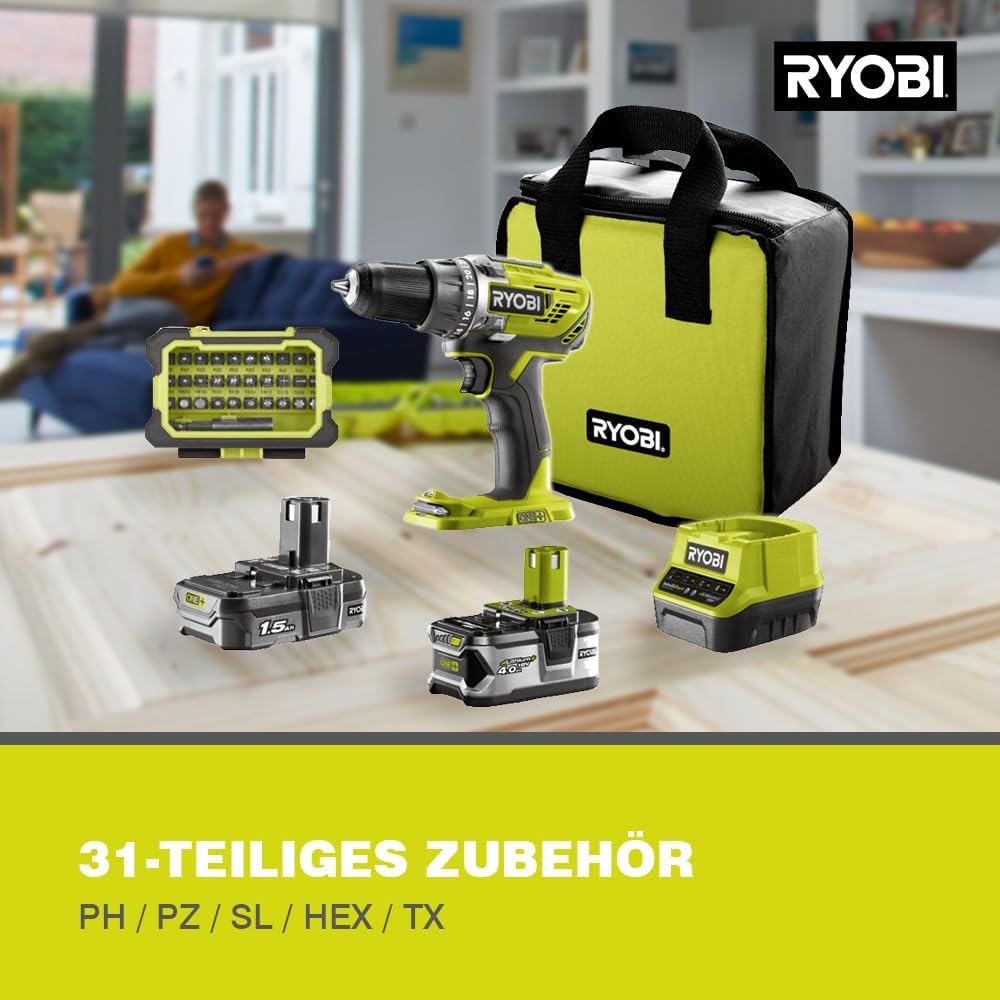 RYOBI R18DD3-2415BSA31: 18V ONE+ Akku-Bohrschrauber (24 Drehmomentstufen, Schnellspannbohrfutter mit automatischer Spindelarretierung) | قیمت یورویی 200.98€