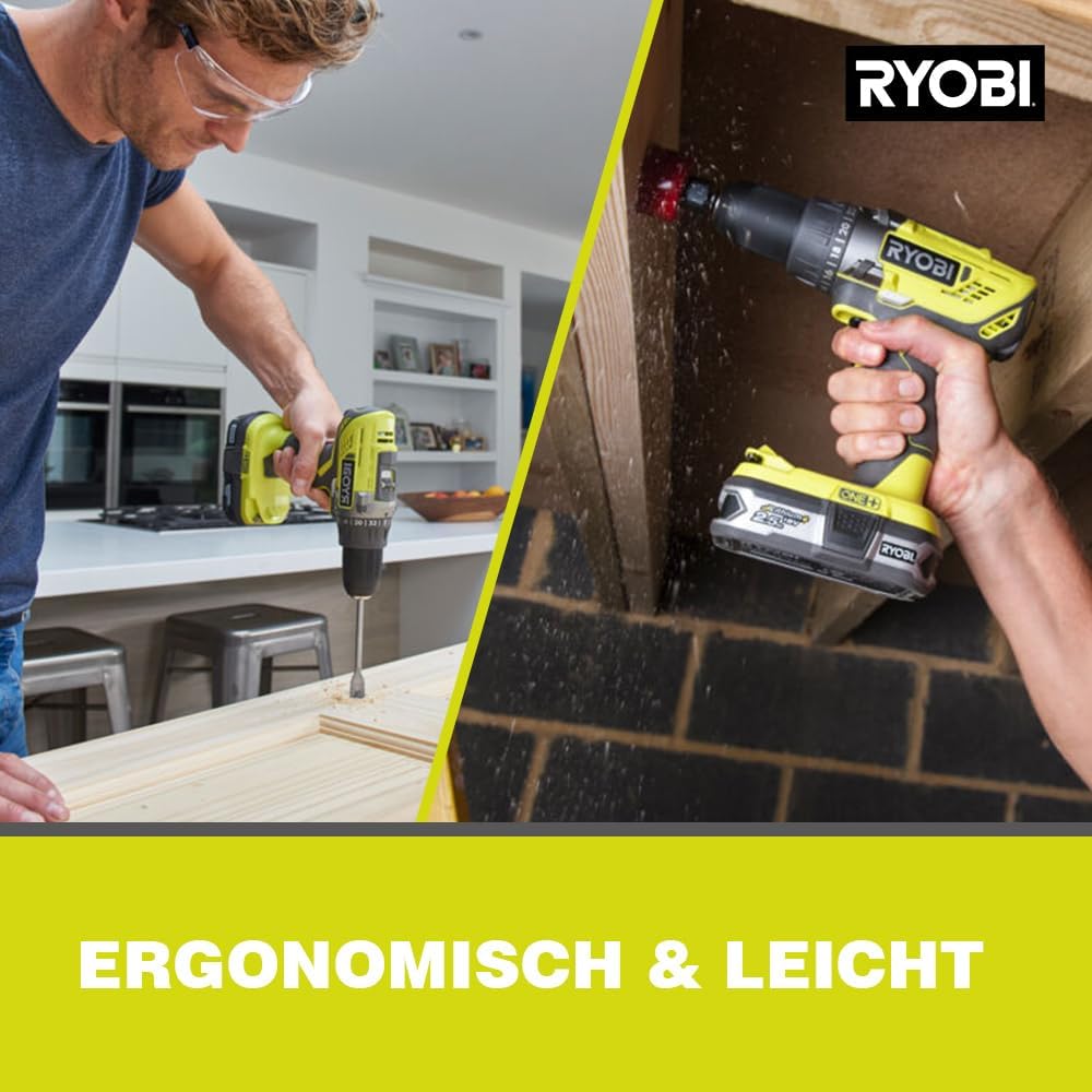 RYOBI R18DD3-2415BSA31: دریل/پیچ گوشتی شارژی 18 ولت ONE+ (24 سطح گشتاور، چاک بدون کلید با قفل دوک خودکار)