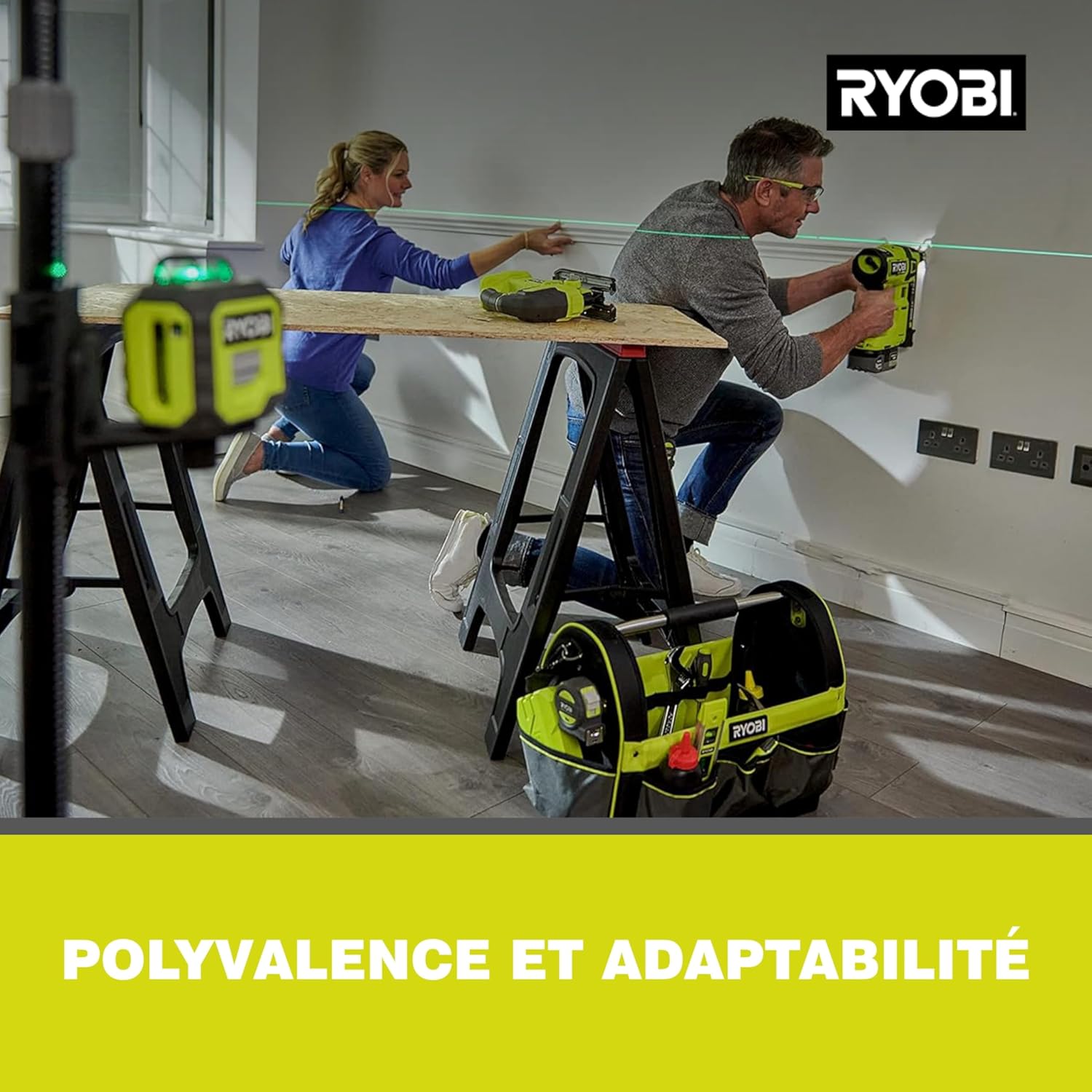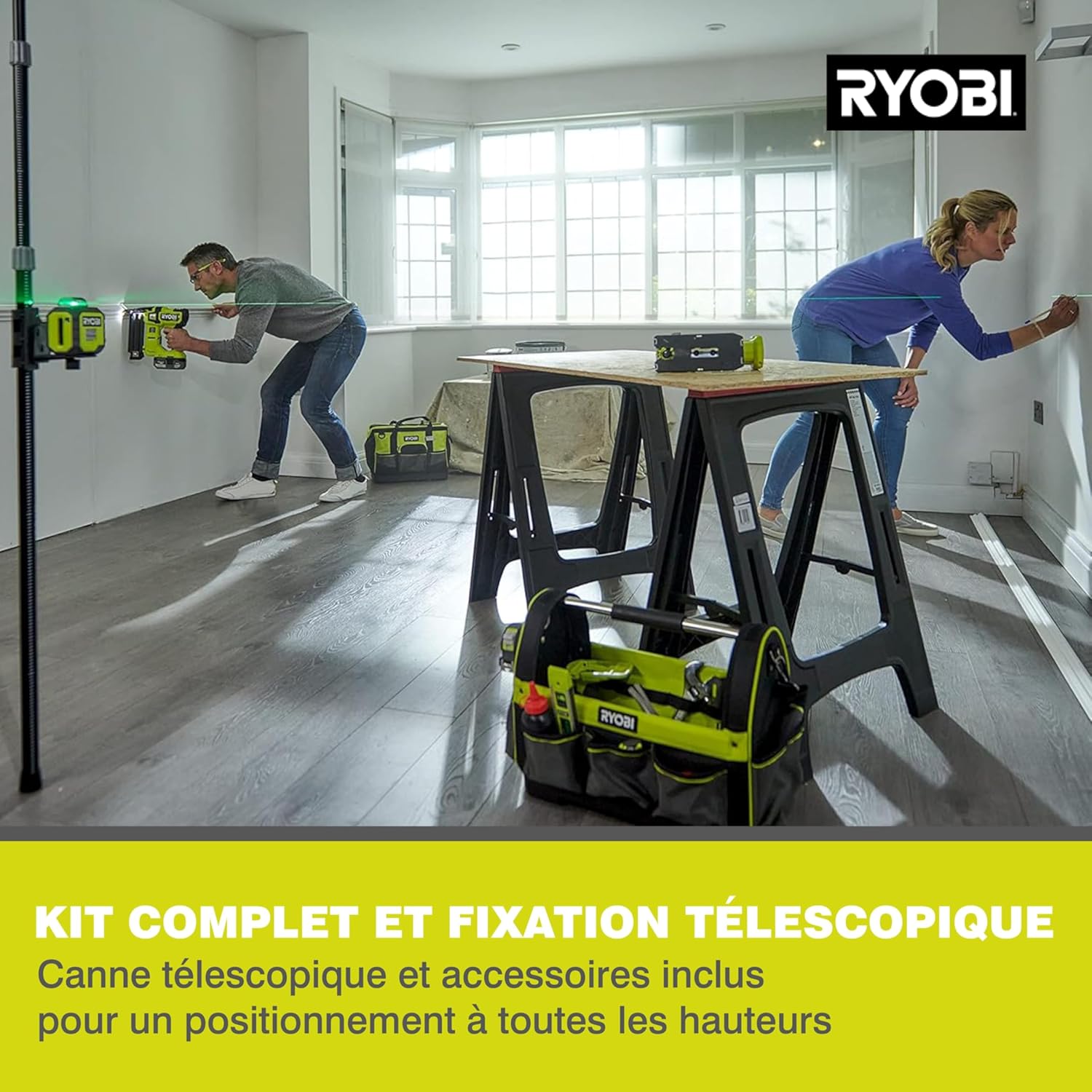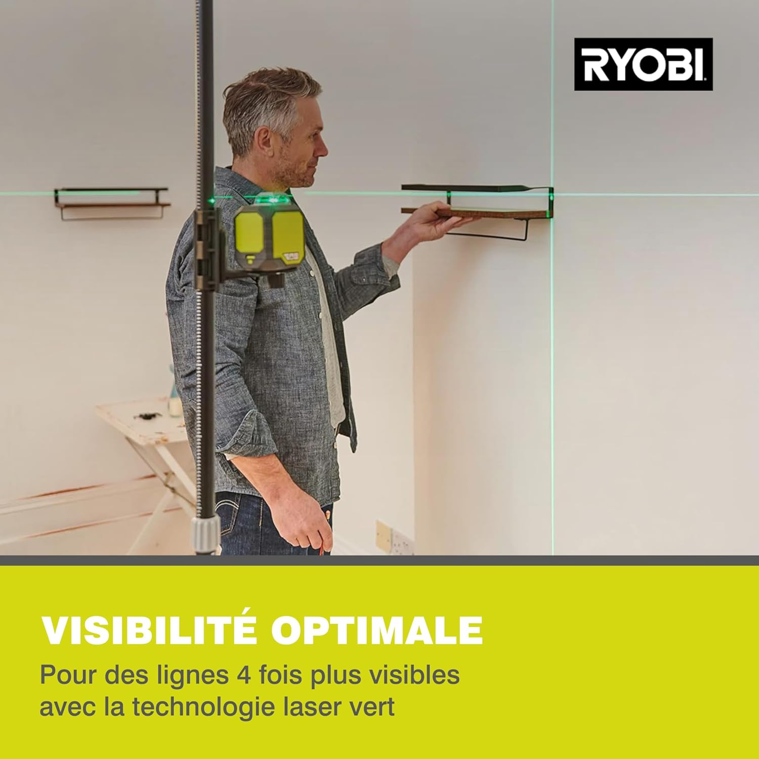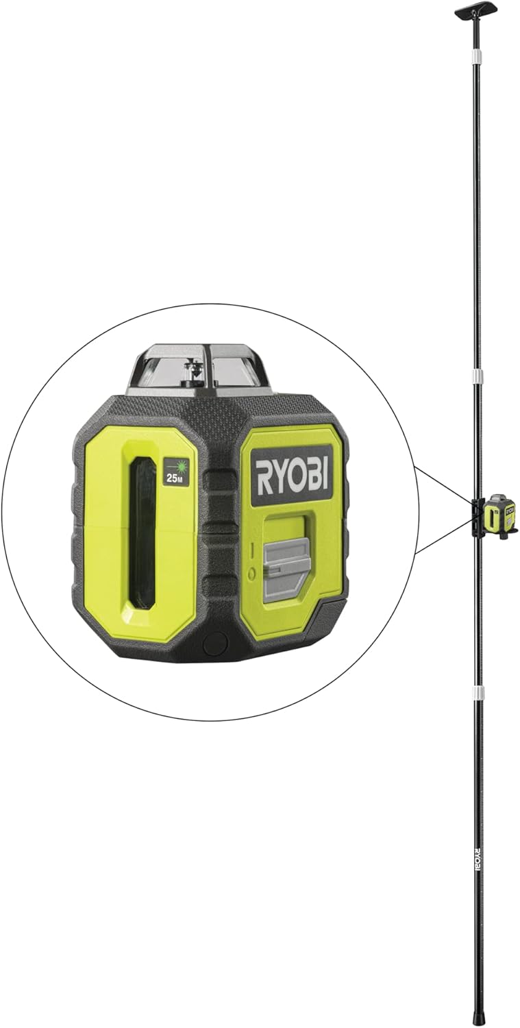 RYOBI cross line laser laser 360˚ laser green شامل قطب تلسکوپی RB360GLL-K، 25 متر