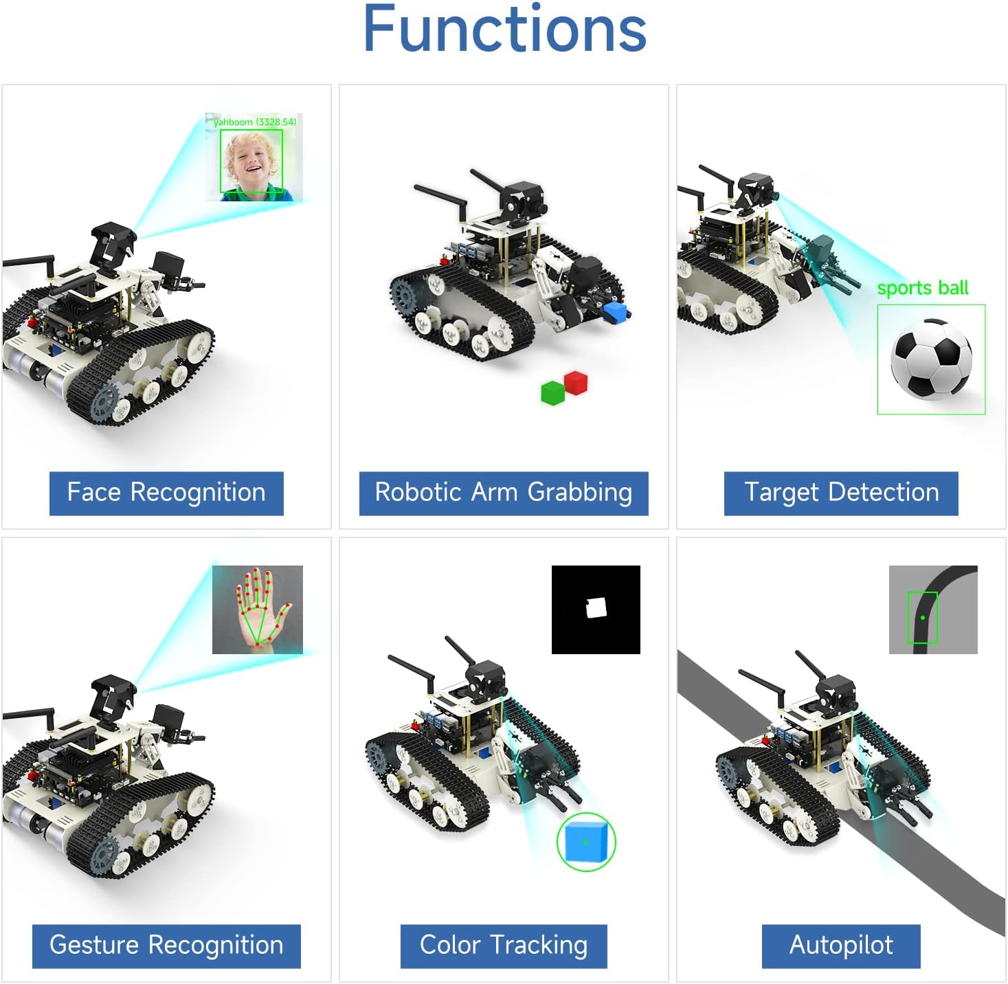 ★Raspberry Pi includes temperature control expansion board, 64GTF card, card reader Jetson Nano includes M.2 wireless network card, radiator, 64G U disk 【Programmable AI Vision Robot Kit】Transbot SE crawler robot is a professional programming kit for entry-level ROS system and vision development. Equipped with Jetson Nano 4GB SUB/Raspberry Pi5 (4GB) , it is simple and fast to operate and easy to teach. Deep Learning for AI with Python and C. (motherboard optional) 【AI Function Combination】 The crawler robot arm robot kit is rich in functions, equipped with a Moveit robot arm, which can realize face recognition, QR code scanning, collision detection, and gesture recognition. It has functions such as tracking, automatic driving, fixed-point or multi-vehicle control, and platooning. With remote control handle control, deep play and easy control. 【Professional hardware】 Transbot SE tank-type robot has a high-end aluminum alloy crawler chassis, a two-degree-of-freedom high-definition camera, a 520 powerful encoding motor, an intelligent steering gear and a Yahboom professional robot 4WD expansion board, which can cope with various complex grounds and can be stable and Easy pass. Users can follow the video instructions to complete the assembly. It's an educational and birthday gift that improves teamwork skills in teens. 【Rich Programming Tutorials】 Bring you a full set of learning framework, related tools, firmware, control software and source code provided by Yahboom. Take you from the basics to understand the Transbot SE robot. You can carry out secondary development based on the existing code to make your own self-driving robot car. 【Reliable Customer Service】Yahboom robot kit products are sold to North America, Europe, South America, Asia, and are widely recognized and supported by customers. Our professional, reliable and timely technical support services. If you encounter difficulties in learning the product or AI vision programming program, please contact us. Trust Yahboom to be your programming partner. | قیمت یورویی : 312.99€