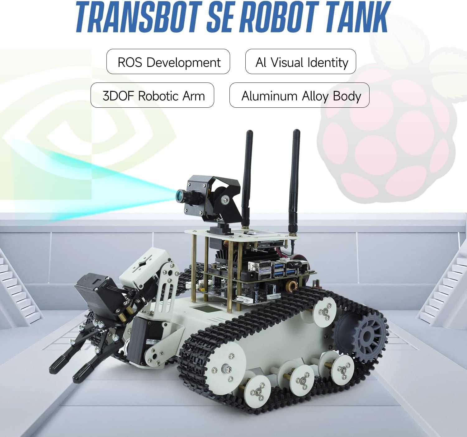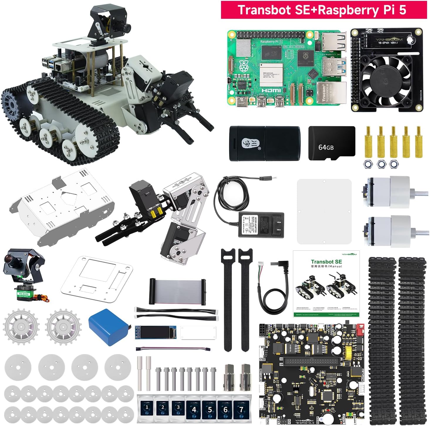Raspberry Pi5 4GB AI Manipulator Kit DIY Programming Artificial Intelligence Robot Kit Tracked Chassis Autopilot OpenCV|MediaPipe (Transbot SE with Pi5 4G) | قیمت یورویی 312.99€