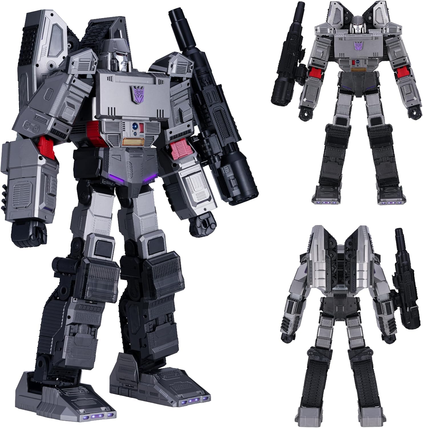 Der weltweit erste sich automatisch verwandelnde Megatron: Erleben Sie den Anführer der Decepticons in Aktion, während er nahtlos zwischen Panzer- und Robotermodus wechselt – mit beispielloser Präzision und Realismus. Nach drei Jahren Entwicklung liefert Robosens Megatron eine faszinierende Darstellung von Stärke und Bewegung, während er die Schlacht um das Universum anführt! Authentisches Design & echte Panzerspuren: Mit authentischen Details, darunter panzerartige Ketten, die Drehungen, Geländefähigkeiten und Kletterkraft ermöglichen, ist Megatron für Leistung optimiert. Das metallische Finish verleiht ihm ein stilvolles Silbergrau und spiegelt seinen mächtigen und düsteren Charakter wider. Fortschrittliche Technologie & Spitzentechnologie: Mit 118 Mikrochips, 36 hochpräzisen intelligenten Servomotoren und einer Sechsachsen-IMU bietet Megatron geschmeidige, stabile und präzise Bewegungen. 112 helle LEDs beleuchten seine Rüstung in lebendigem Blau und Violett und verstärken den beeindruckenden Decepticon-Effekt. Mehrere Programmiermodi für individuelle Aktionen: Entfesseln Sie Ihre Kreativität mit Robosens fünf Programmiermodi, darunter Blockbasiert, Sprachaktiviert, Manuell, Einfach und PC-Programmierung. Passen Sie Megatrons Bewegungen an und erstellen Sie epische Kampfaktionen mit Optionen zum Aufzeichnen, Speichern und Teilen über den Robosen Hub. Exklusives Arsenal & einzigartige Berührungsreaktion: Megatron ist mit einem Energon-Schwert, einer Energon-Keule und vier Panzergeschossen bewaffnet, um Feinde zu vernichten. Die Berührungssensortechnologie auf seiner Brust löst einzigartige Reaktionen aus und taucht Sie tiefer in das ultimative Decepticon-Erlebnis ein. Steuern Sie ihn per App, um jeden seiner Schritte mühelos zu befehligen. | قیمت یورویی : 1276.87€