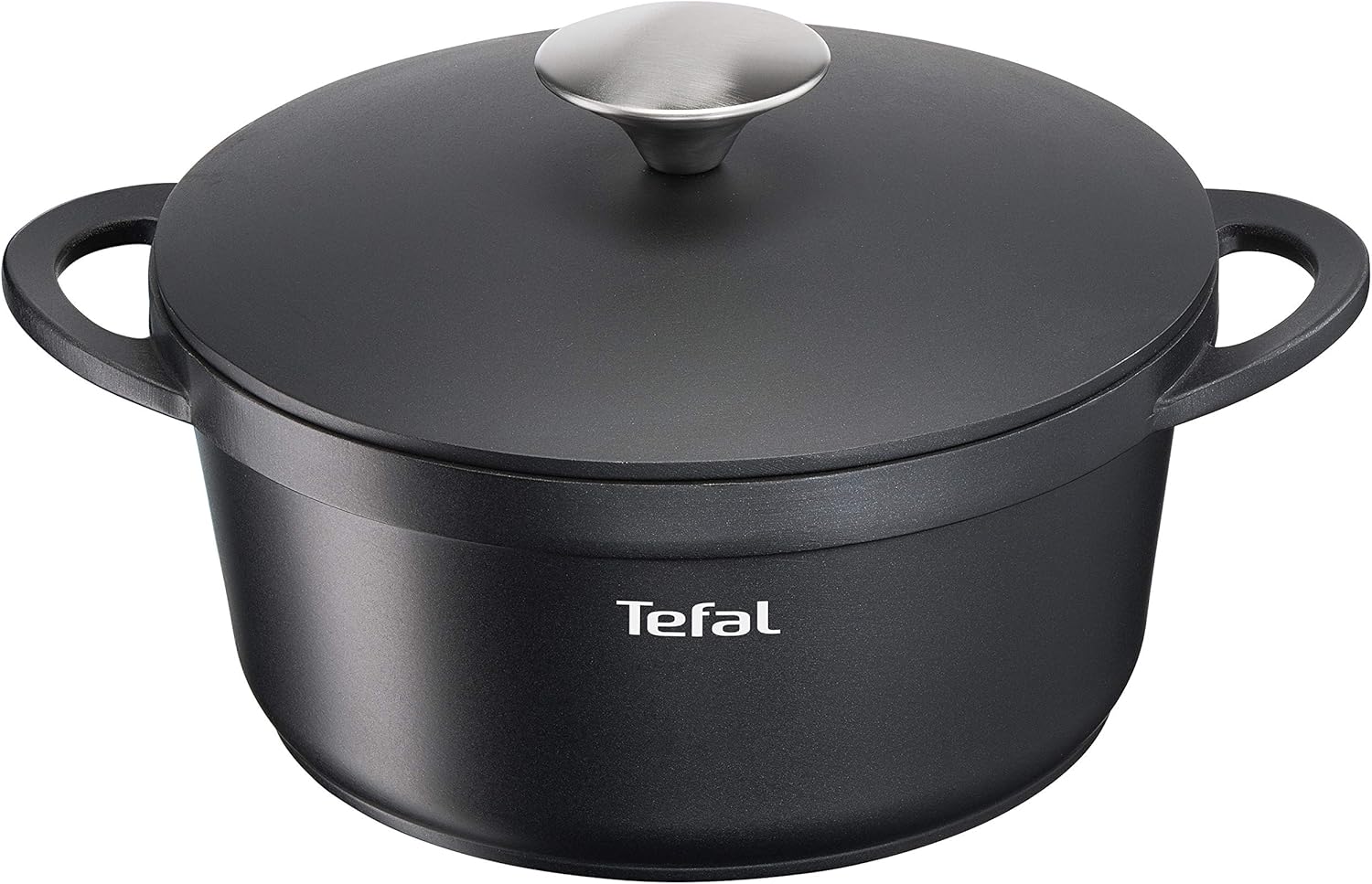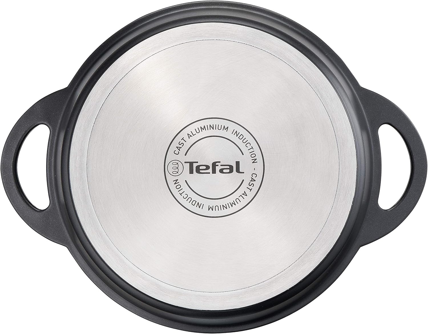 TEFAL TRATTORIA کاسرول القایی 20 سانتی قابلمه آلومینیومی ریخته گری، سرخ کن درب دار، روکش نچسب، حفظ حرارت عالی، مناسب برای انواع اجاق گاز، قابلمه، مشکی، E21844 Single POT 20CM