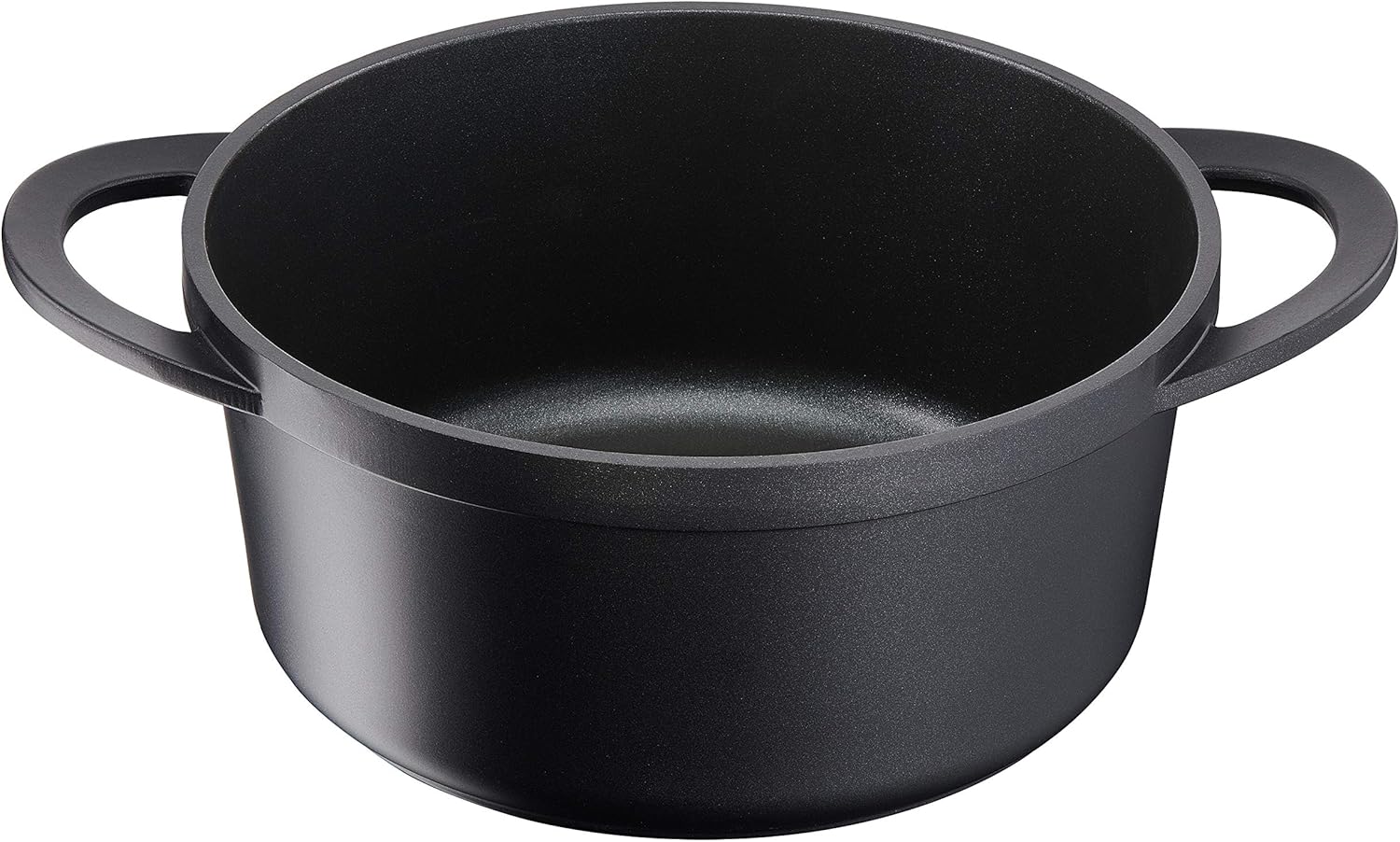 TEFAL TRATTORIA Schmortopf Induktion 20 cm, Aluguss Topf, Bräter mit Deckel, Antihaftbeschichtung, ausgezeichnete Wärmespeicherung, für alle Herdarten geeignet, Bratentopf, schwarz, E21844 Single TOPF 20CM | قیمت یورویی 79.99€
