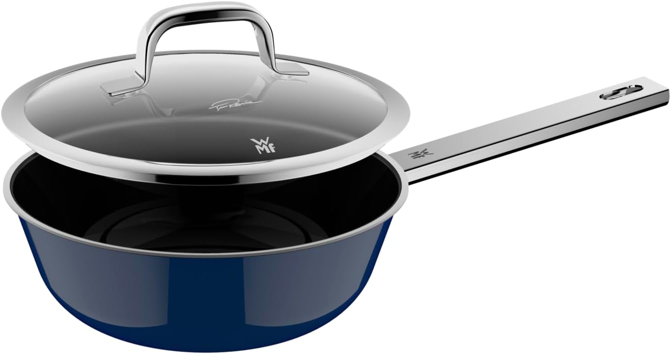 WMF Fusiontec Mineral Pro، نسخه Tim Raue، قابلمه چندکاره با درب، 22 سانتیمتر، جنس بادوام، ضد خش، سازگار با القایی، مناسب برای انواع اجاق گاز، ساخت آلمان، آبی اقیانوسی، 0521385290