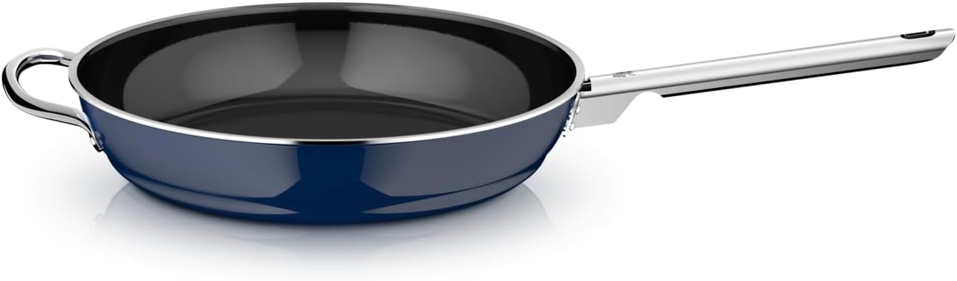 WMF Fusiontec Mineral Pro, Tim Raue Edition, Stielpfanne, 28 cm, langlebiges, kratzfestes Material, Pfanne für alle Herdarten geeignet, Made in Germany, 0521405290 لینک آمازون : https://www.amazon.de/dp/B0FQJQ77CB?th=1&psc=1 محتویات: قابلمه (۲۸ سانتیمتر). قابلمه قابل شستشو در ماشین ظرفشویی Fusiontec: 20 ماده معدنی طبیعی، به طور جدایی ناپذیری با هم ترکیب شدهاند - برای یک سطح بسیار سخت و بادوام. ساخت آلمان سطح فوقالعاده مقاوم در برابر خش ظروف ما به راحتی از پس هر چالش آشپزی برمیآید - و حتی در برابر ظروف فلزی آشپزخانه نیز مقاوم است. حفظ حرارت فوقالعاده - پخت یکنواخت و ایجاد عطر کامل را تضمین میکند. ظروف پخت و پز Fusiontec به سرعت تا دمای دلخواه گرم میشوند، بنابراین آمادهسازی آسان حتی دشوارترین غذاها را نیز امکانپذیر میکنند. حتی سرخ کردن با مقاومت حرارتی بالا تا ۲۵۰ درجه سانتیگراد برای قهوهای شدن کامل. دسته توخالی کاهنده حرارت - برای جابجایی راحت و ایمن روی هر اجاق گاز. احتیاط: هنگام استفاده در فر قابل استفاده نیست.