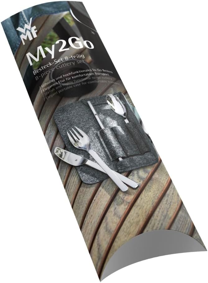 WMF my2Go, Edelstahl, Besteck Set 8-teilig, Outdoor Reisebesteck Set 1 Person, Campingbesteck mit Etui, Wanderbesteck umweltfreundlich, Strohhalm, Reinigungsbürste, Camping Zubehör Geschenk My2Go Besteck Single | قیمت یورویی 27.99€