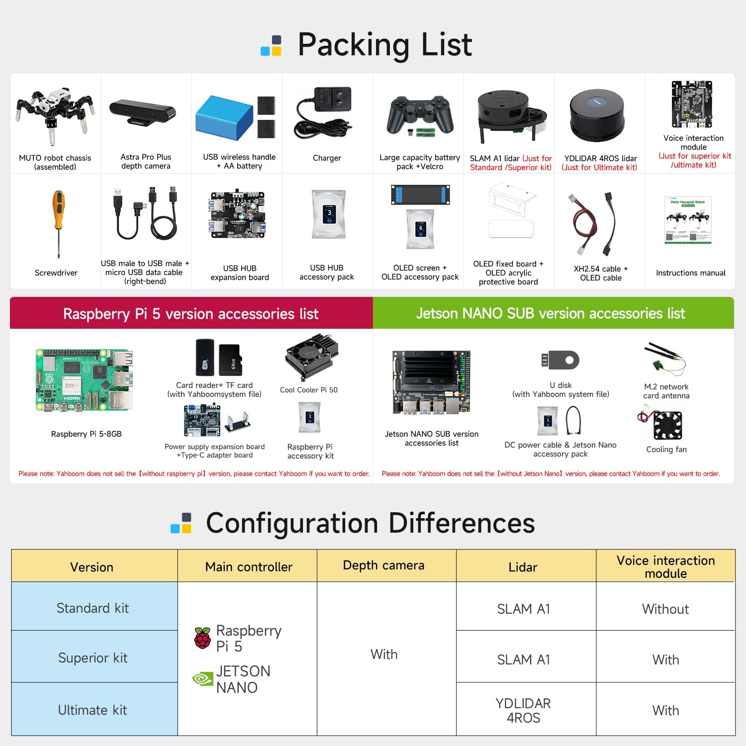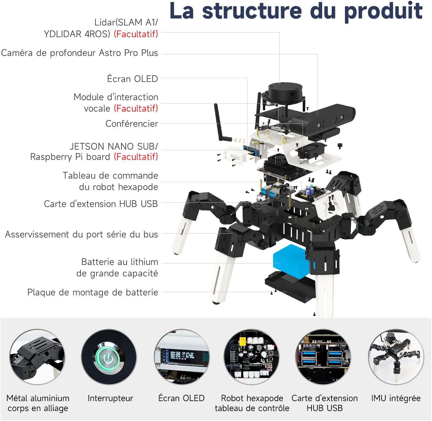 Yahboom 18DOF Bionic Hexapod Jetson Nano 4GB SUB Robot ROS2 System AI Vision 3D SLAM Mapping Navigation Ubuntu 20.04 Voice Recognition Interaction 18DOF Bionic Motion (Superior Ver with Nano) | قیمت یورویی 1170€