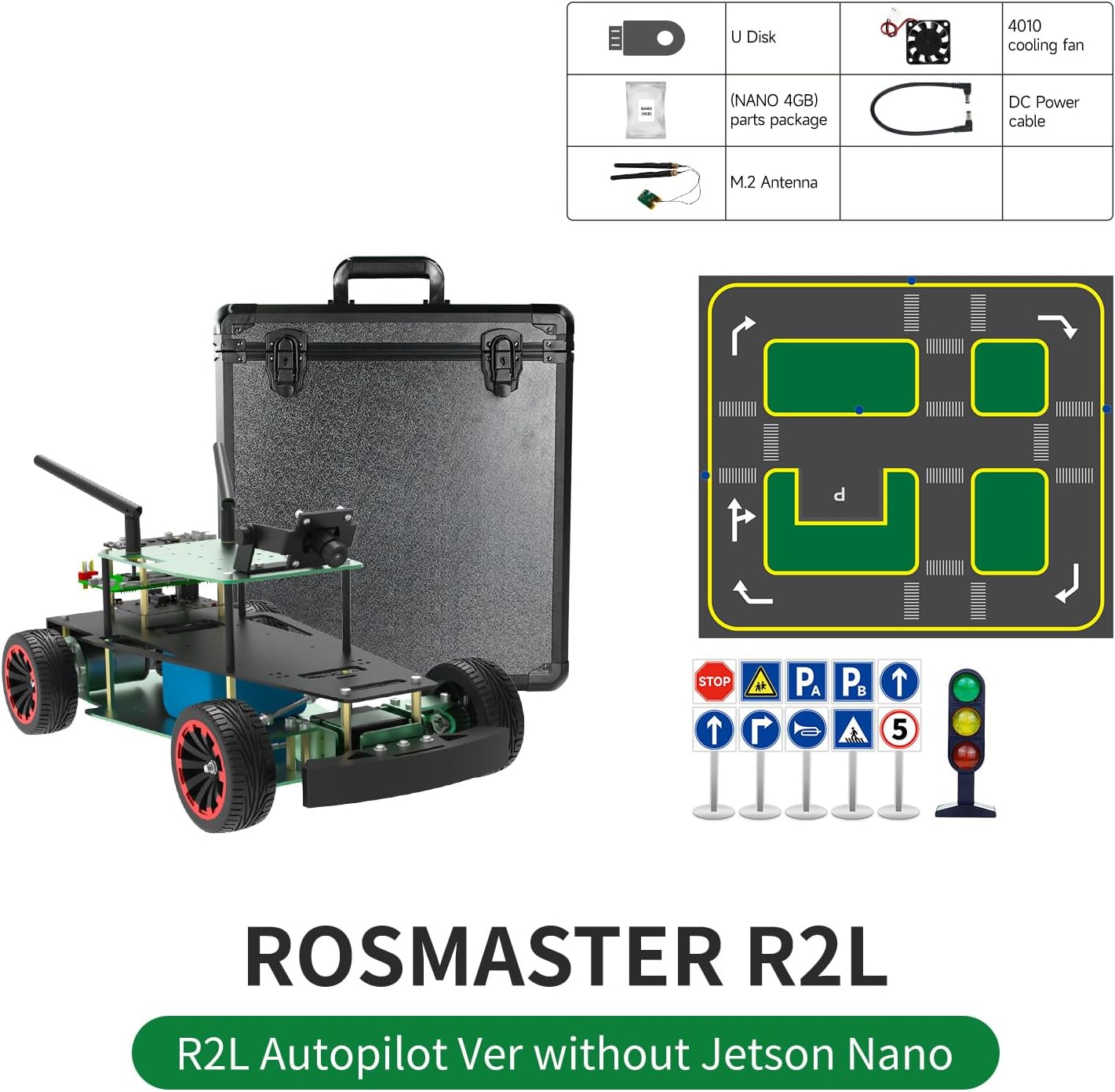 Complete the code programming of the R2L robot based on the Robot Operating System (ROS), demonstrating the latest autonomous driving and AI recognition technology. Multiple controls, like all premium kits, this robotics kit comes with a remote control handle and a user interface, that can be accessed from a mobile device or PC. Enjoy being in control. Unterstützt Jetson NANO 4GB SUB developed based on ROS and Ubuntu operating systems. The robot must be controlled by the development board, otherwise it cannot be started. We apply 2MP high-definition cameras and combinine them with some recognition algorithms to achieve model training, autonomous driving, object recognition, label tracking and other functions. Like other Yahboom robot cars, R2L supports APP/handle expression control. The R2L robot adopts the Ackerman chassis structure design. While using the structural advantages to reduce power consumption, the car turns more smoothly, faster and more accurately, thus improving the competition efficiency. This is a cool thing in model game competitions. The self-driving version comes with a 3.2 x 2.8m (125 x 110 in) curved driving map. The R2L robot kit has trained a model for this map, and other configurations are the same as the standard version. Conistent. Keep in mind that programmable kits require you to have at least some basic understanding of coding and setting parameters, so you'll have to learn a lesson or two about coding and programming languages in order to use the product. We provide 80 courses with chinese and english subtitles to help users quickly get started with model training of autonomous driving and ROS operating systems. | قیمت یورویی : 629€