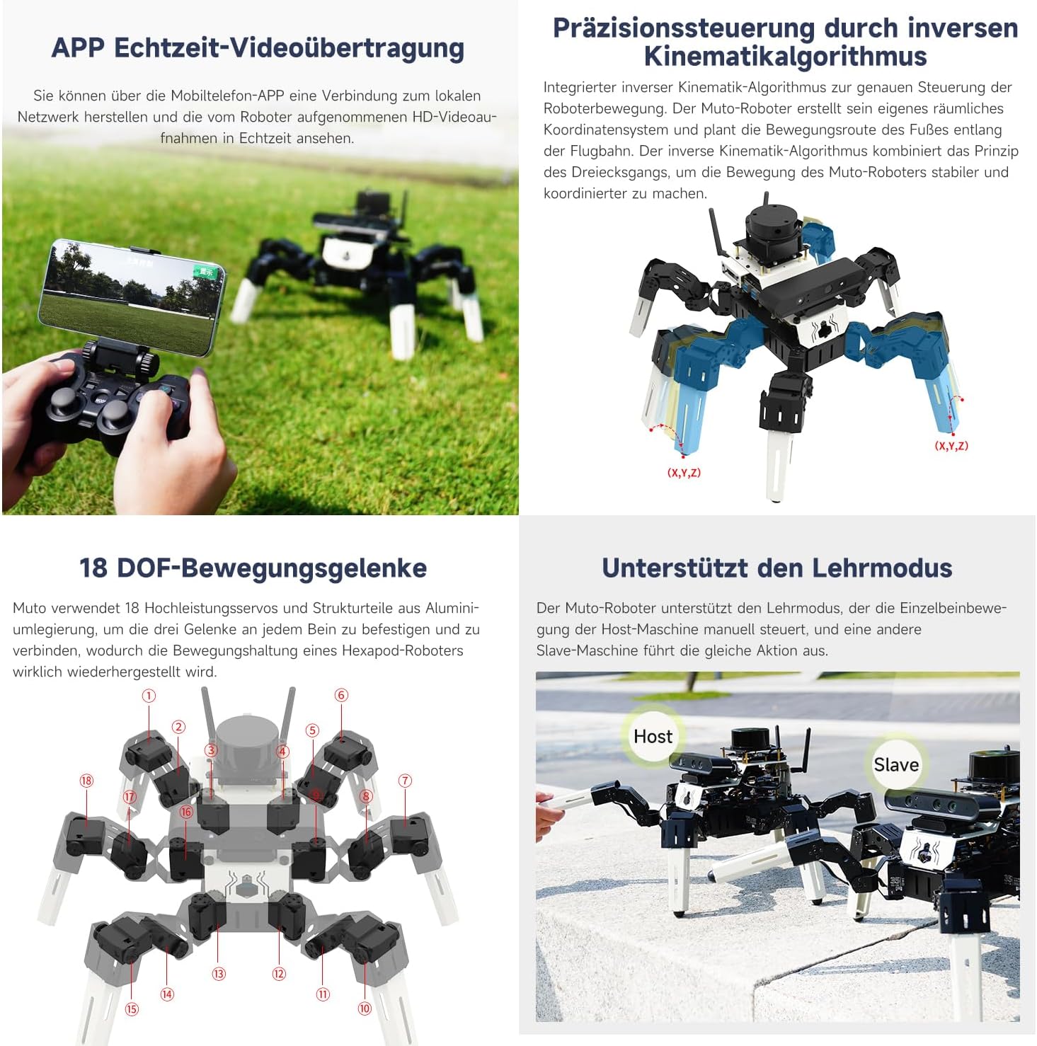 Yahboom Raspberry Pi 5 8GB18DOF Bionic Hexapod Roboter ROS2 System AI Vision 3D SLAM Mapping Navigation Ubuntu 22.04 Voice Recognition Interaction 18DOF Bionic Motion ROS2 (Superior Ver with Pi5-8GB) | قیمت یورویی 1039€