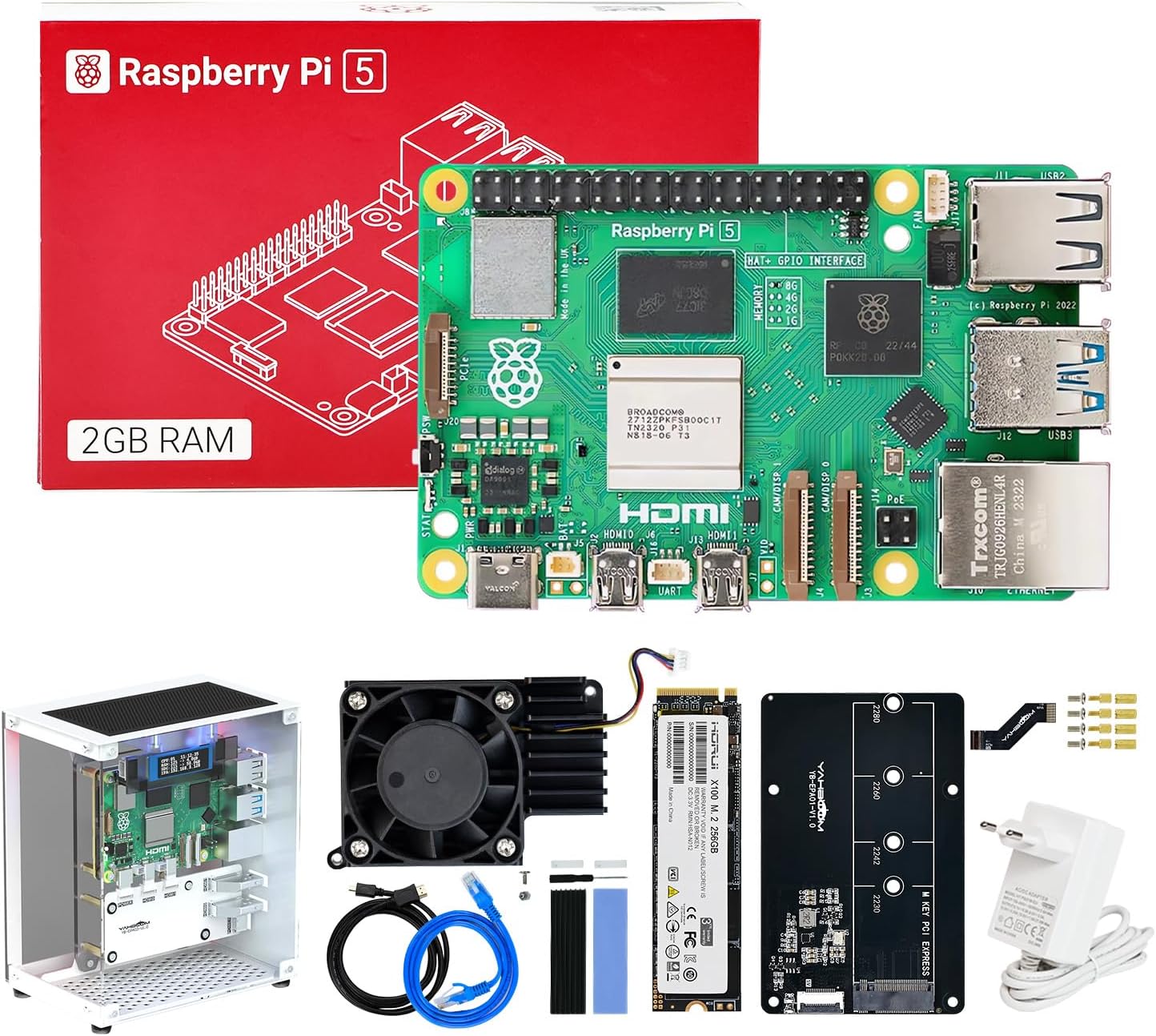 Yahboom Raspberry Pi5 Developer Kit 2GB + Mini Chassis+Pi 5 Case Active Cooling+PCIe M.2 SSD+256G SSD ROS2 System Ubuntu20.04 Suitable for AI Programming Python (2GB-Cube Pi Case Kit) | قیمت یورویی 231€