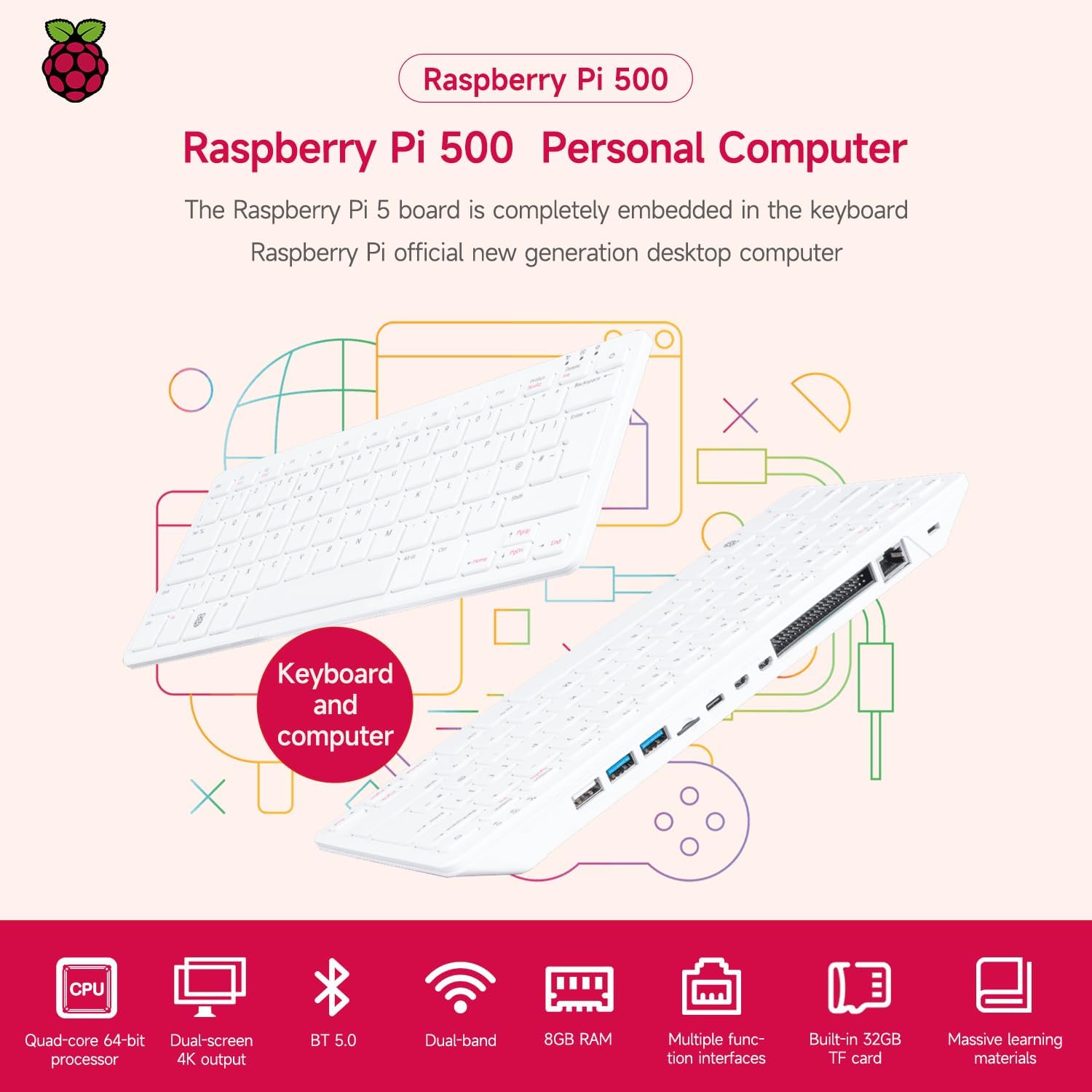 Yahboom RaspberryPi 500,Keyboard Kit Desktop Computer (US).Quad-core Arm Processor,Dual 4K Output,WiFi/BLE Support with Official RPi 32GB Micro SD Card | قیمت یورویی 138.99€